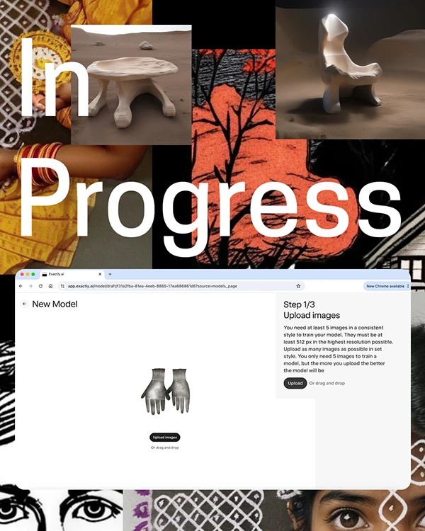 In Progress was a collaborative workshop hosted by the University of Greenwich School of Design in partnership with exactly.ai. The session, led by MA Design lecturers Carolina Perez Leon and Elena Papadaki, invited students to explore AI as a creative companion through the concept of “post-ready-mades.”